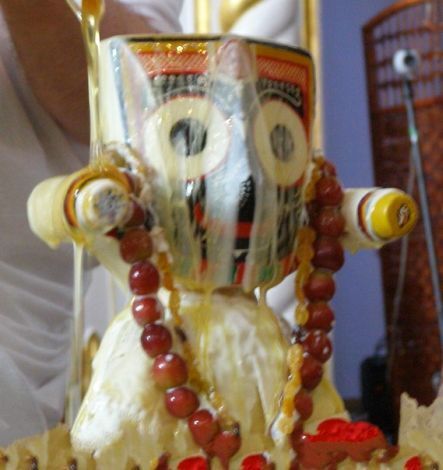 На восточной стене храма с давних времен установлена специальная платформа, на которую в этот день выходят Божества на абхишеку (омовение). Каждый, кто находится в храме, может принять участие в этой церемонии, получив таким образом милость Господа. Такая возможность для преданных предоставляется один раз в году. Рядом с платформой находится Зотолой колодец, из которого берут воду для абхишеки, 108 горшков. После абхишеки Господь любит покушать, поэтому ему готовят 108 праздничных блюд, которые возвращаются преданным как милость Господа в качестве махапрасада.
