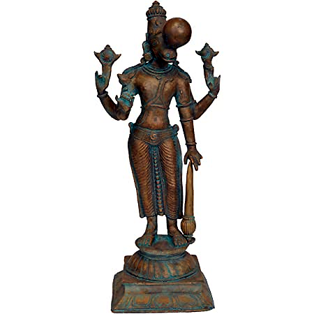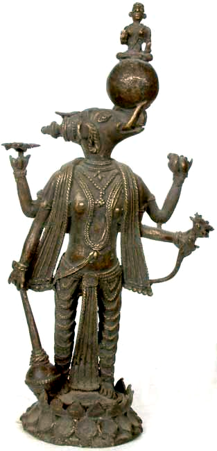 В вышеупомянутом мурти Варахи и Бху-деви, и ее пьедестал из лотоса исчезли и были заменены олицетворенным Земным шаром. Мы не можем согласиться с тем, что это даже Божество Бху-Вараха, поскольку Бху-деви полностью отсутствует, а Земля в форме шара не представляет ни Бху-мандалу, ни Бхарата-варшу, как они описаны в Шримад-Бхагаватам. И снова в приведенном ниже мурти Бхудеви полностью исчезла.
