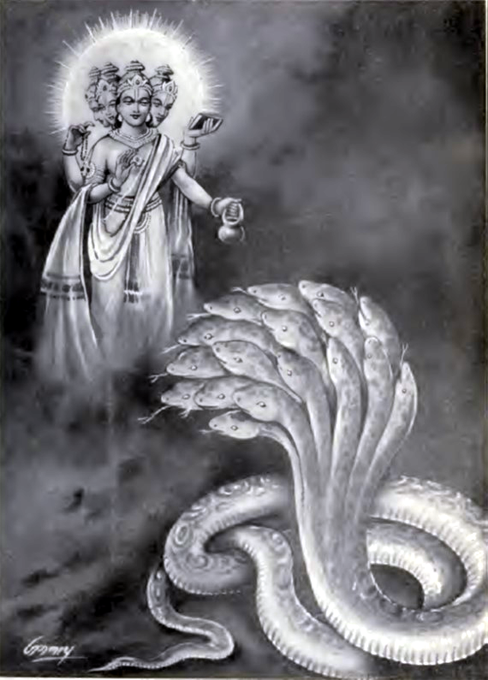“Брахман сказал: “О лучший из змей, иди под Землю. Она сама даст тебе щель, через которую ты сможешь пройти. И, о Шеша, удерживая Землю, ты непременно сделаешь то, что я очень ценю.’