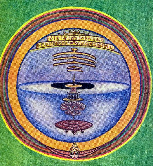 Пожалуйста, обратите внимание, что под “плоской Землей” мы имеем в виду не сплющенную версию земного шара, предположительно парящего в космосе, а скорее описание, найденное в Ведических Пуранах (историях) гигантской Бху-мандалы (“Земного круга”), которую держит воплощение Верховной Личности Бога. Божество по имени Ананта-шеша. Бху-мандала на самом деле была первоначальной концепцией Земли, которая существовала в Древней Индии, действительно, эта концепция плоской круглой Земли была общей и распространенной верой, которая просуществовала вплоть до эпохи Британского владычества. Как и в случае с богатством и свободой, которые постепенно были отобраны у индийского народа британскими империалистами, так же как и их вера в древние священные учения Вед — особенно в области космологии. Позже мы обсудим коварную связь между атеизмом и систематическим разрушением древних мировых космологий (все из которых описывают Землю как неподвижную плоскость).