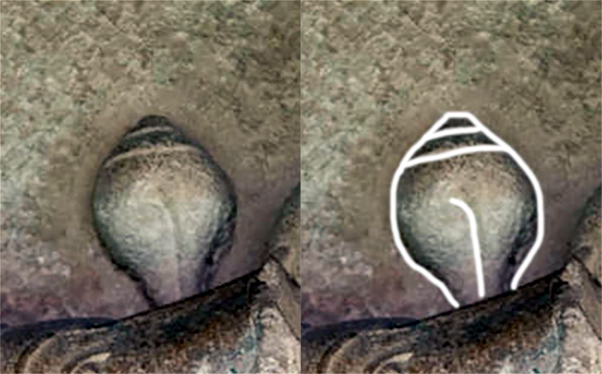 . . .Как оказалось, более тщательный осмотр Джахнавой Нитай дасом показал, что так называемый Земной шар на самом деле является раковиной в одной из четырех рук Варахи: