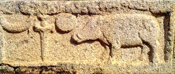 Другая резьба на эмблеме (см. ниже) ясно подтверждает, что это изображение эмблемы Виджаянагары, а не изображение Варахи, поднимающего Землю. Как мы увидим позже, игра Варахи, поднимающего Землю, на самом деле изображено совсем по-другому.