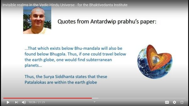 Несмотря на то, что подземные царства Земли имеют глубину 70 000 йоджан (560 000 миль), есть и такие члены ИСККОН, которые утверждают, что Паталалоки находятся внутри так называемого земного шара. Приведенный ниже мем — это еще один пропагандистский материал, представленный Радха-Моханом дасом, который демонстрирует нулевое понимание или веру в семь подземных царств, как они описаны в Шримад-Бхагаватам.